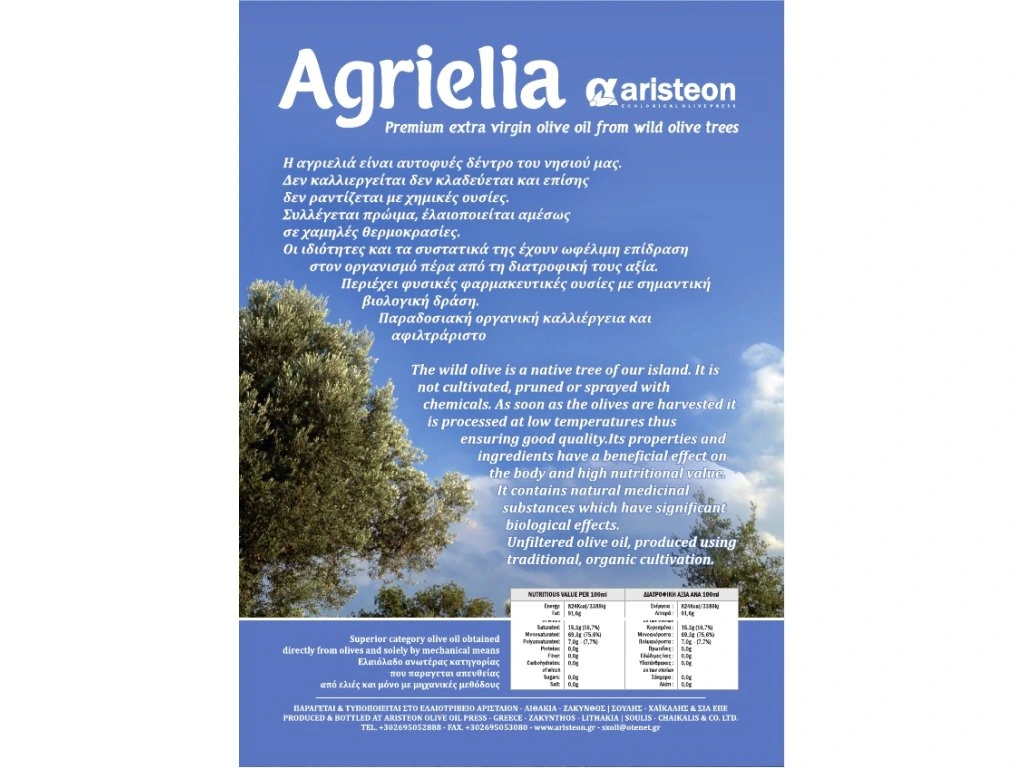 Agrielia Aristeon, extra panenský olivový olej z divokých olivovníků, 250 ml