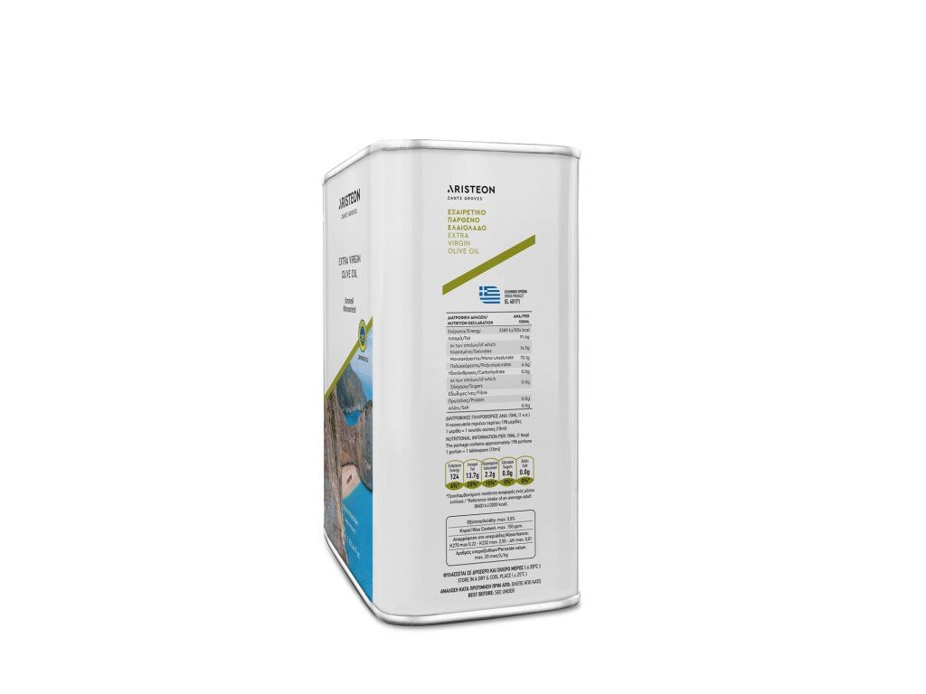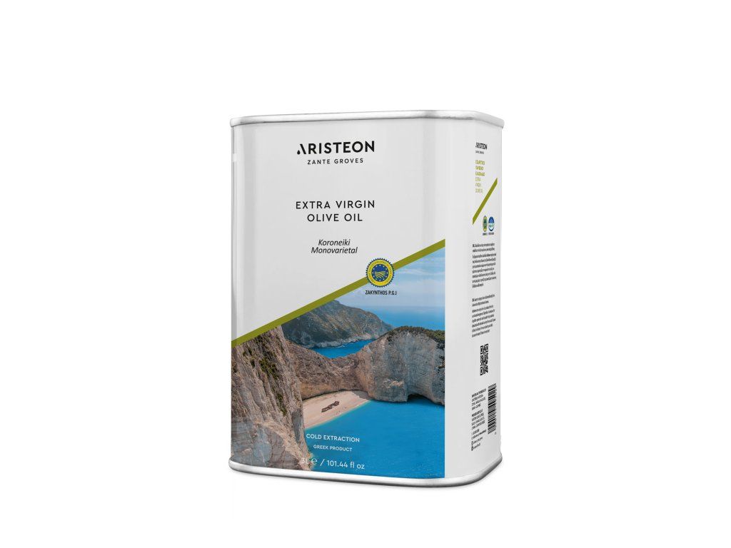 Olej Aristeon se lisuje v rodinné firmě na řeckém ostrově Zakynthos z oliv druhu Koroneiki, které rostou v pečlivě vybraných olivovníkových hájích. Je proslulý pro svou delikátní máslově ovocnou chuť s vůní čerstvě posečené trávy - ve filtrované variantě s decentním akcentem tónů řeckých bylin. Pro svou úžasnou jemnost ho milují i děti a lidé, kteří jinak olivový olej nepreferují. Pokrm dokáže zjemnit a chuť lehce oživit čerstvým středomořským nádechem. Navíc se vyznačuje dlouhodobě vynikajícími hodnotami acidity a peroxidového čísla.