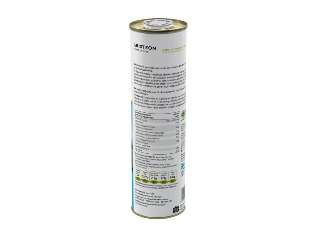 Olej Aristeon se lisuje v rodinné firmě na řeckém ostrově Zakynthos z oliv druhu Koroneiki, které rostou v pečlivě vybraných olivovníkových hájích. Je proslulý pro svou delikátní máslově ovocnou chuť s vůní čerstvě posečené trávy - v nefiltrované variantě s vyváženým akcentem tónů řeckých bylin. Díky úžasnému aroma ho upřednostňují milovníci středomořské kuchyně a labužníci. Pokrm dokáže nejen zjemnit, ale i dochutit a vrátí vás zpět přímo do řecké taverny. Navíc se vyznačuje dlouhodobě vynikajícími hodnotami acidity a peroxidového čísla.