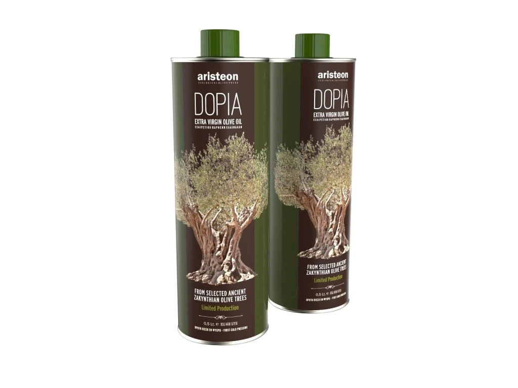 Exkluzivní varianta extra panenského olivového oleje Aristeon z řeckého ostrova Zakynthos, v letech 2021 a 2018 oceněná zlatem organizace World olive center, jindy zase stříbrem.Olej se lisuje výhradně ze staletých a tisíciletých olivovníků původní zakynthoské odrůdy Dopia, která byla postupně nahrazována variantou Koroneiki.