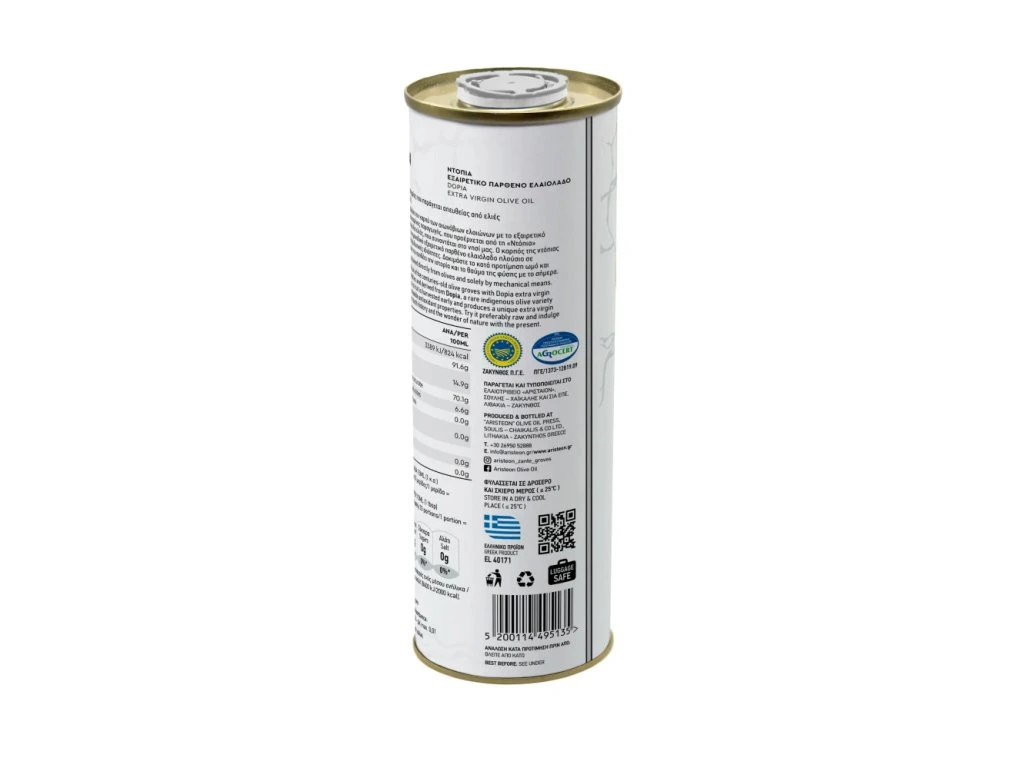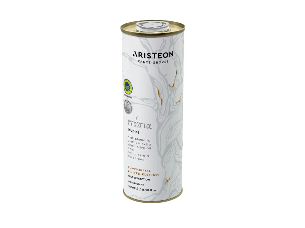 Exkluzivní varianta extra panenského olivového oleje Aristeon z řeckého ostrova Zakynthos, v letech 2021 a 2018 oceněná zlatem organizace World olive center, jindy zase stříbrem. Olej se lisuje výhradně ze staletých a tisíciletých olivovníků původní zakynthoské odrůdy Dopia, která byla postupně nahrazována variantou Koroneiki.
