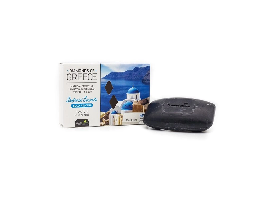 Luxusní 100% přírodní olivové mýdlo řady Diamonds of Greece, které je baleno v designové papírové krabičce a zdobené motivem atraktivní řecké destinace.
