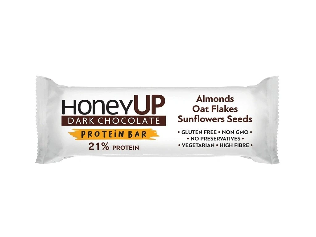 Proteinová cereální tyčinka Honey UP s medem, mandlemi, hořkou čokoládou a ovesnými vločkami, 40 g