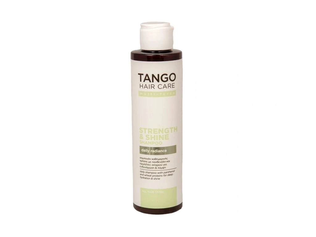 Šampon Tango (nové složení od 12/2024) s panthenolem, pšeničnými proteiny a olivovým olejem je vhodný pro každodenní péči, vyniká lehkou svěží vůní a díky kombinaci panthenolu, pšeničných proteinů a olivového oleje jemně pečuje o všechny typy vlasů. Šampon zanechává vlasy čisté, přirozeně hydratované a revitalizované.