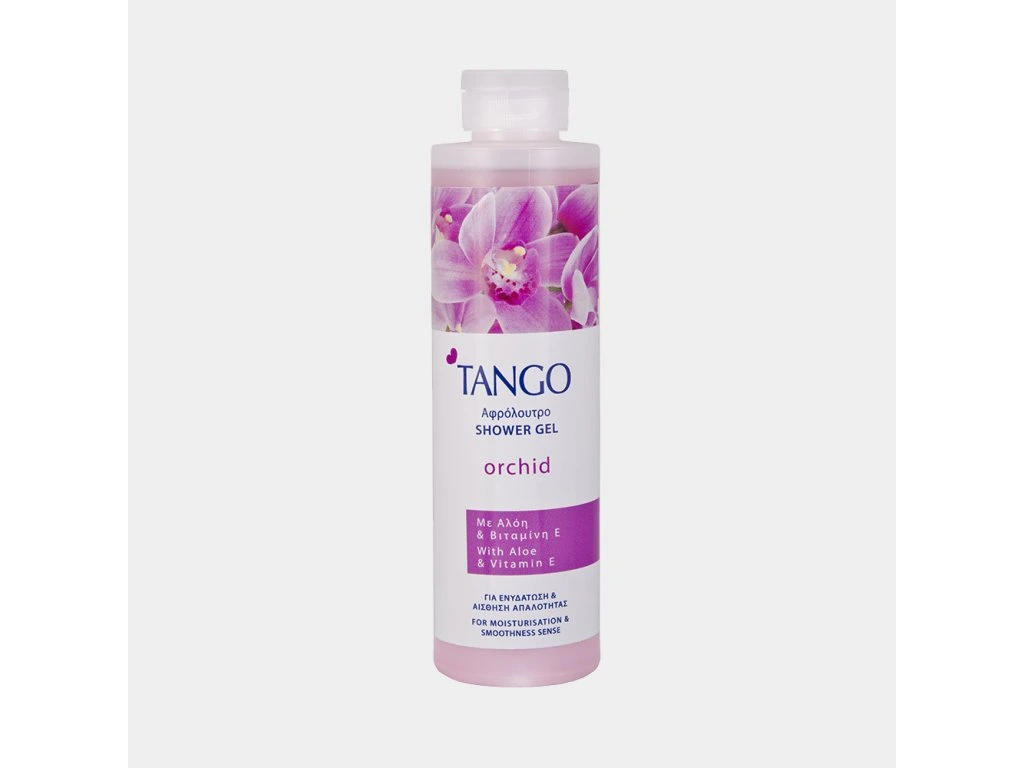Olivový sprchový gel Tango s nádhernou vůní orchideje pečuje o všechny typy pokožky. Díky jedinečné kombinaci aloe a vitamínu E zanechává pokožku vláčnou, hydratovanou a s dlouhodobým pocitem hedvábné jemnosti. Je ideální pro každodenní péči.