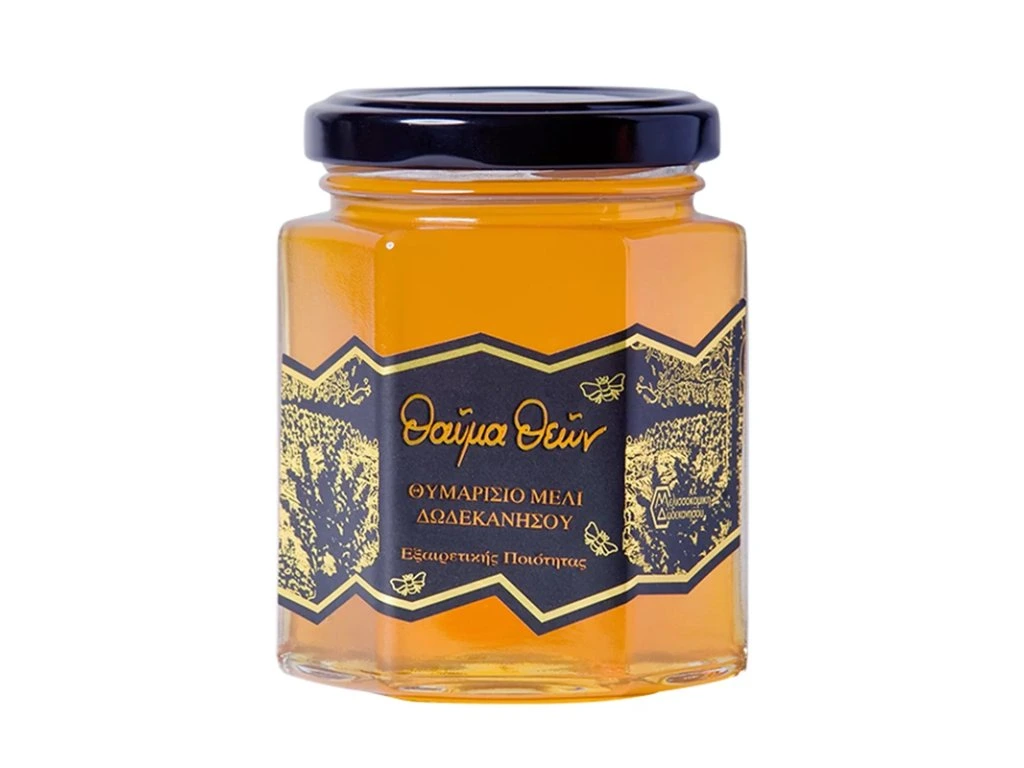 Tymiánový med Miracle of Gods (Thayma Theon) pochází z ostrovů Rhodos, Kos a dalších Egejských ostrovů. Je to nejoceňovanější řecký med s mnoha mezinárodními certifikáty a diplomy.